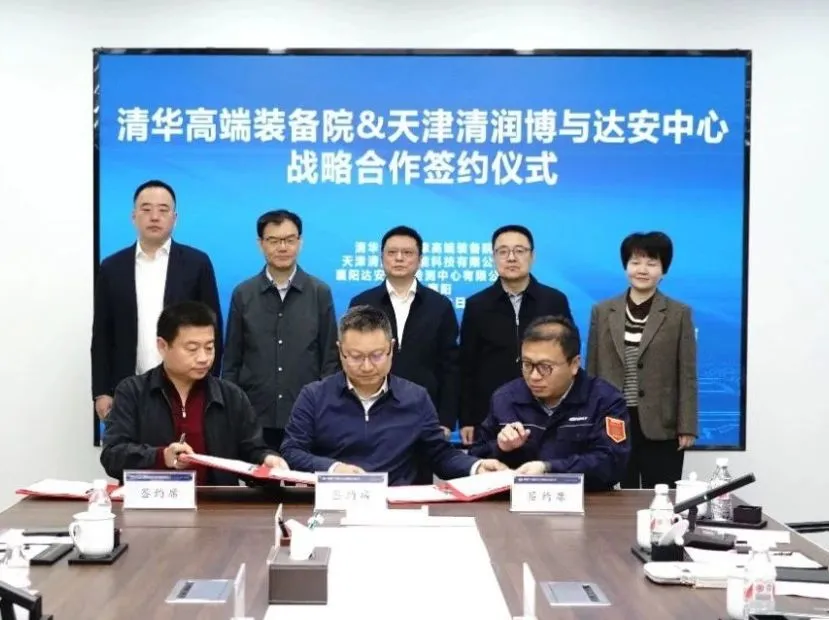 襄阳市政府党组成员张斌;襄阳市高新区党工委委员马晓萍;达安中心党委书记、总经理王靳;清华天津装备院常务副院长何永勇;天津清润博总经理孙瀚,以及各方相关负责人、技术专家出席活动并见证签约。